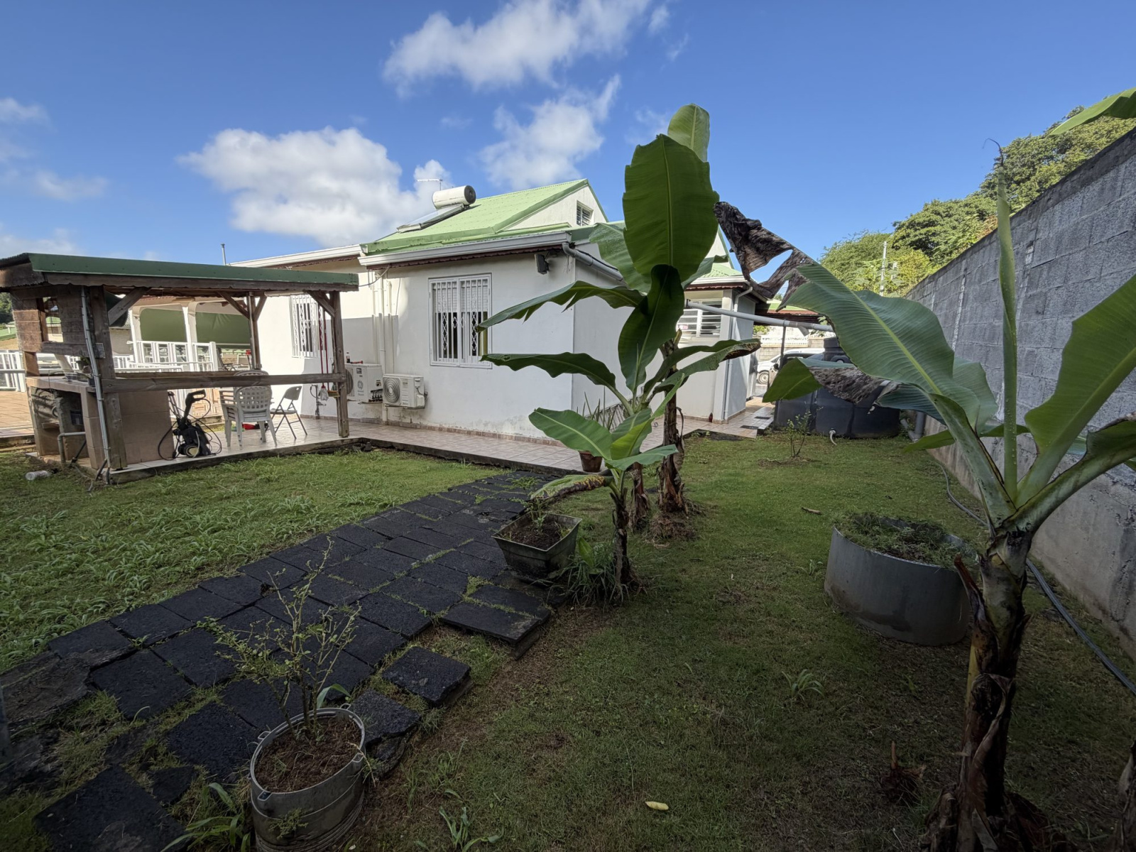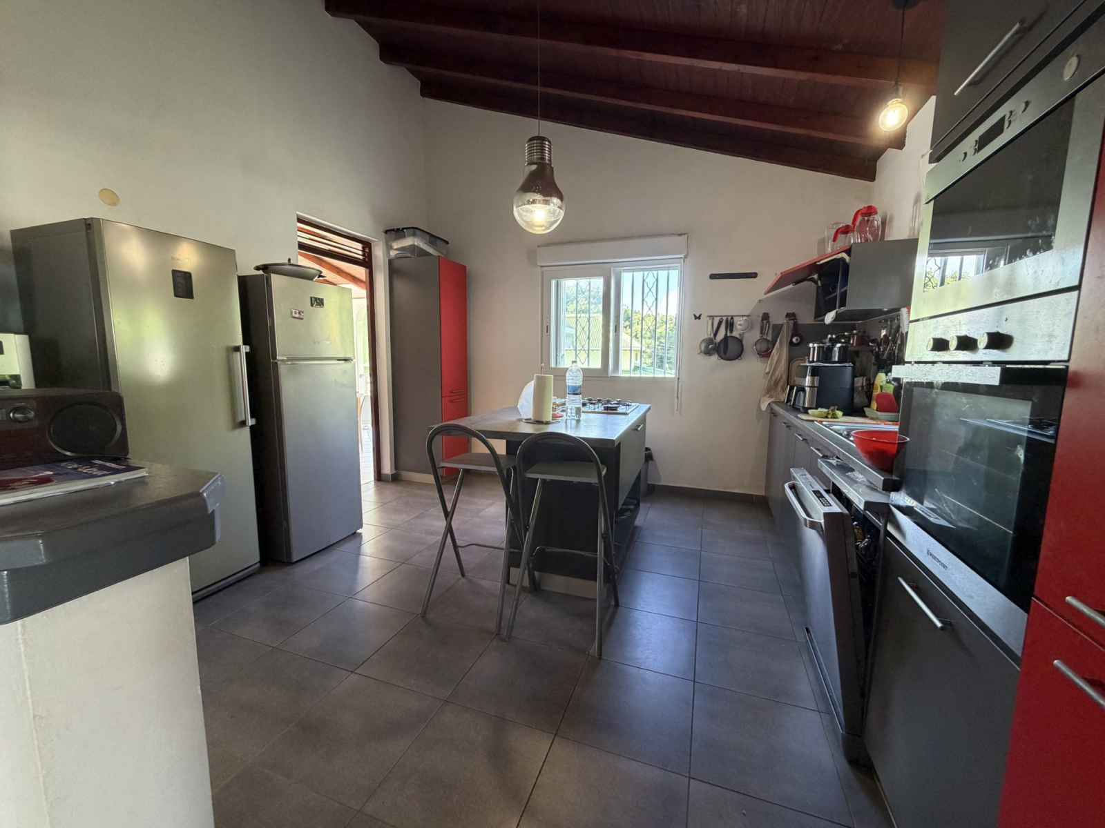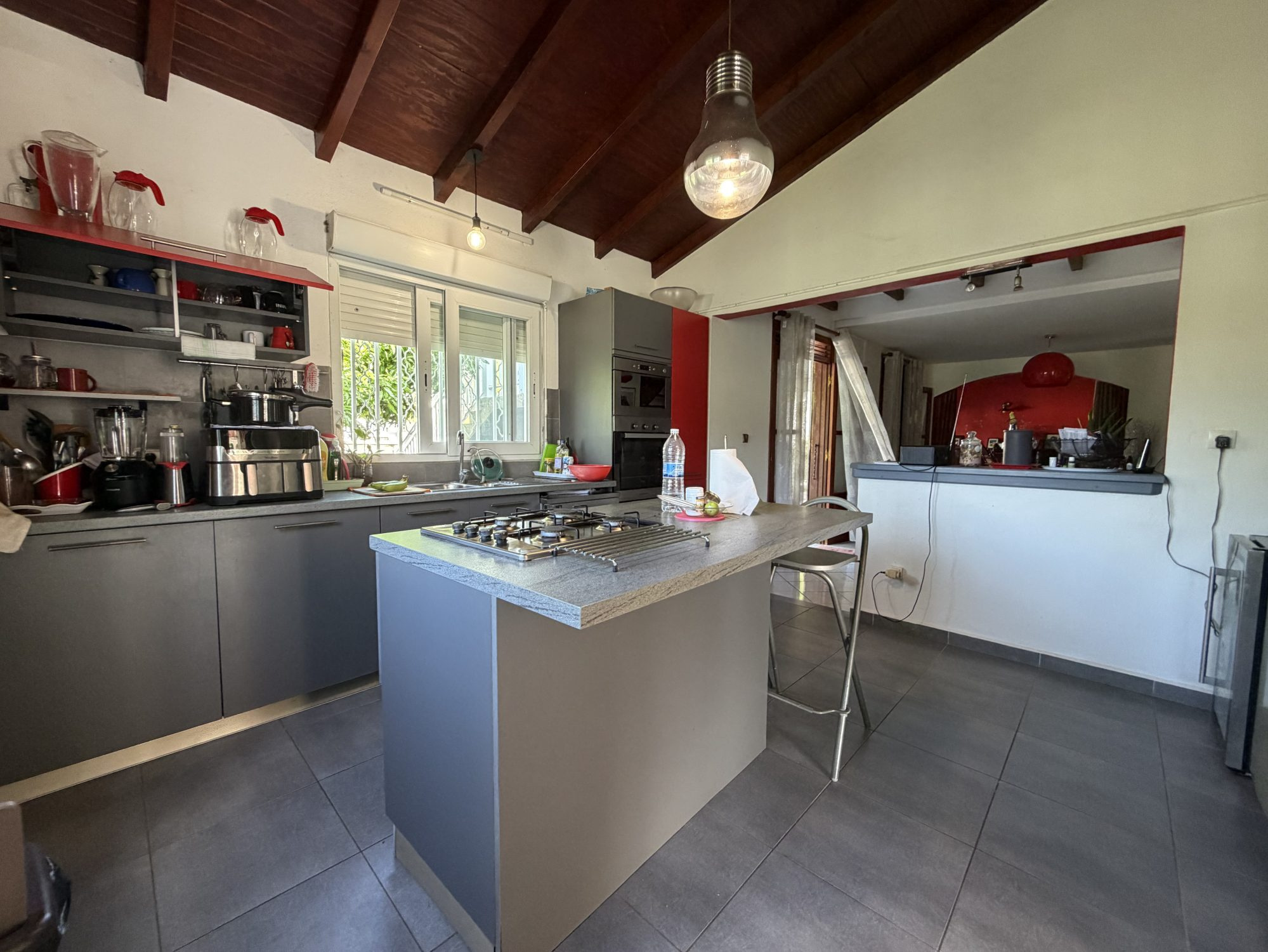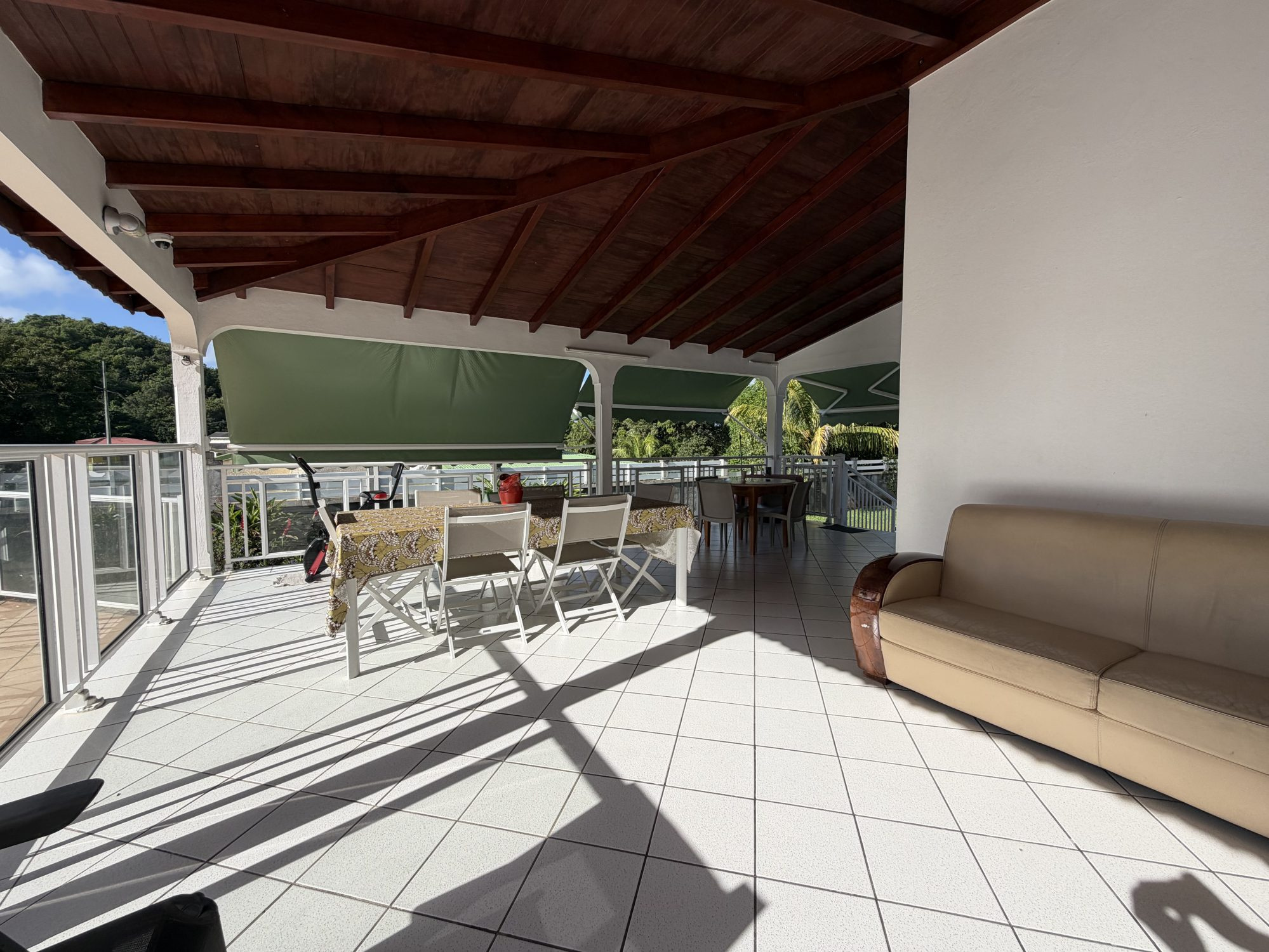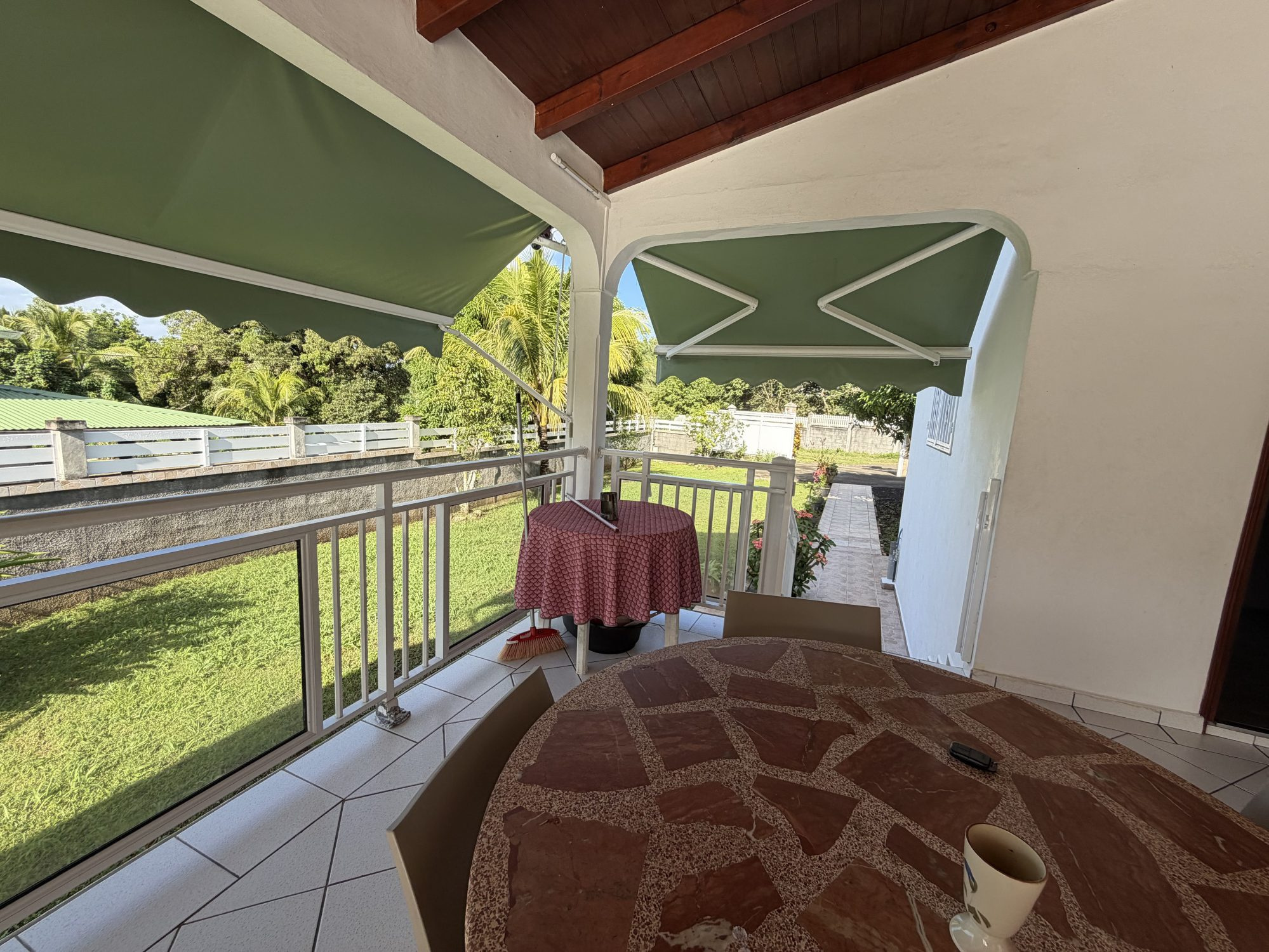 Dans un lieu calme aux Abymes, à proximité de toutes commodités, superbe villa 6P parfaitement entretenue et habitable immédiatement. Elle se compose d'un grande cuisine équipée donnant sur 46m2 de séjour/salon en L, d'un bureau de plus de 11 m2 et de 2 chambres de 16 et 14m2, chacune disposant de sa salle de bains privative. Un WC indépendant vient compléter cette partie qui s'ouvre sur l'extérieur composé d'une magnifique terrasse en L de 49m2 donnant directement sur une piscine au sel de 8x3. Une cuisine extérieure ainsi qu'un carpot et un local de rangement viennent compléter le rez-de-chaussée. L'étage, accessible par un escalier intérieur ou par l'extérieur (en totale indépendance) se compose d'un grand studio de 30 m2 disposant d'un petit balcon, d'une cuisine aménagée et d'une salle de bains privative. A savoir que cet étage se loue jusqu'à 680 €/mois, générant ainsi un revenu locatif pour ceux qui le souhaitent. La maison est en excellent état et n'attend que ses nouveaux propriétaires.